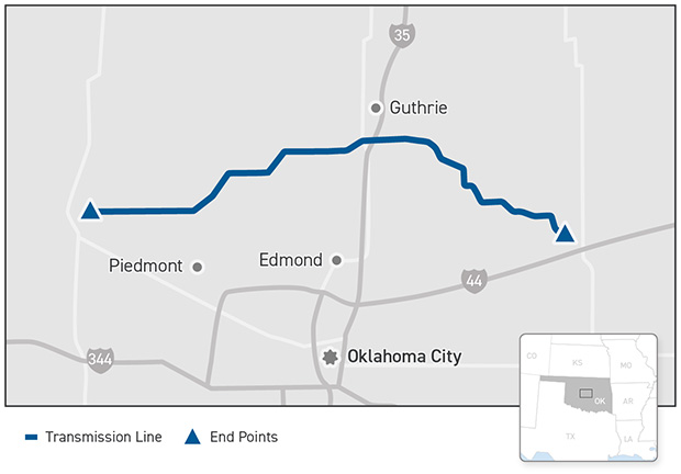 - New Transmission Line: Transource is constructing approximately 40 miles of a 345 kilovolt (kV) electric transmission line. This line will connect the Mathewson Substation to the Redbud Substation, both operated by Oklahoma Gas and Electric (OG&E).
